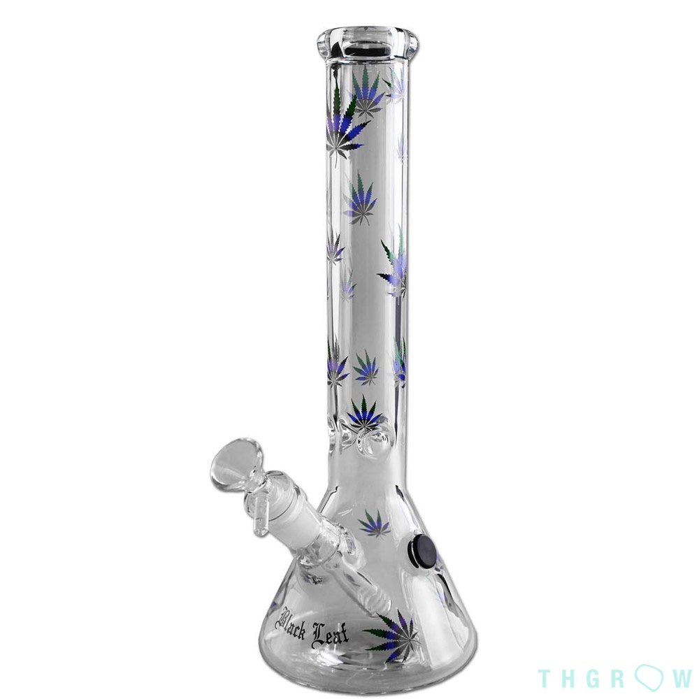 This 45 cm Black Leaf bong stands as an imposing piece, made of borosilicate glass to ensure durability and exceptionally smooth and cool hits, while its Beaker-type base gives it maximum stability; furthermore, its exclusive 'Ice Blue Leaves' design, adorned with blue-toned leaves, makes it a center of attention, offering you total control of the airflow thanks to its integrated air hole.