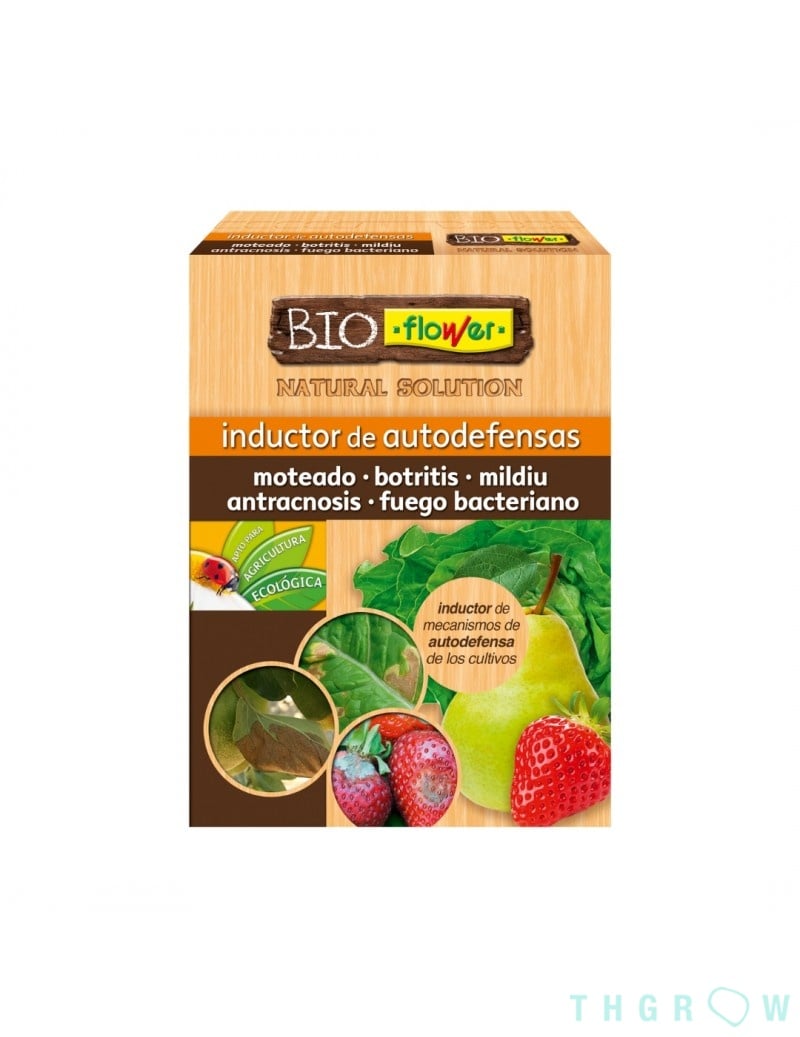 The Flower brand Self-defense Inducer is an ecological product designed to activate the natural protection mechanisms of crops. Its formula, which includes Laminarin at 4.5%, acts as a preventive and curative agent against various common diseases such as mildew, botrytis, bacterial fireblight, leaf spot, and anthracnose. It is suitable for ecological gardening and vegetable patches, ensuring an environmentally friendly treatment. One of its great advantages is that it requires no safety period, allowing its application up until harvest time. It is administered via foliar spray.