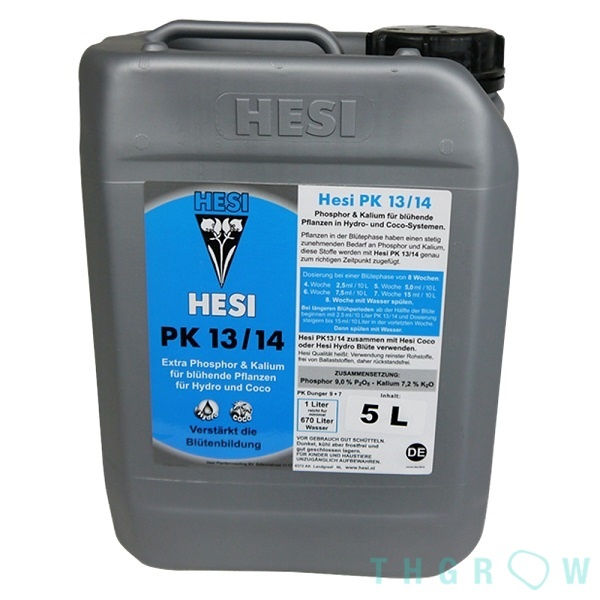 Para estar seguro de que no se carga la planta innecesariamente y demasiado pronto con demasiada sal, se usa Hesi PK 13/14 desde la segunda mitad de la fase de floración hasta una semana antes de la cosecha.