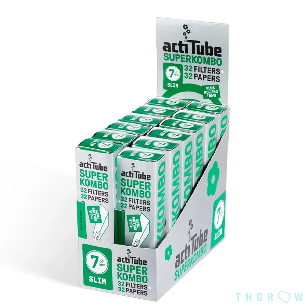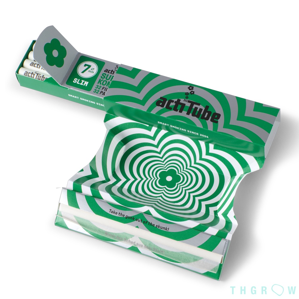 Este pack está disponível com os nossos filtros actiTube SLIM de $7 \text{ mm}$ Full Flavor. Os 32 filtros actiTube estão protegidos no interior da embalagem. O livreto contém 32 papéis ultrafinos ($14 \text{ g}/\text{m}^2$) tipo Slim, que garantem uma combustão suave e uniforme.