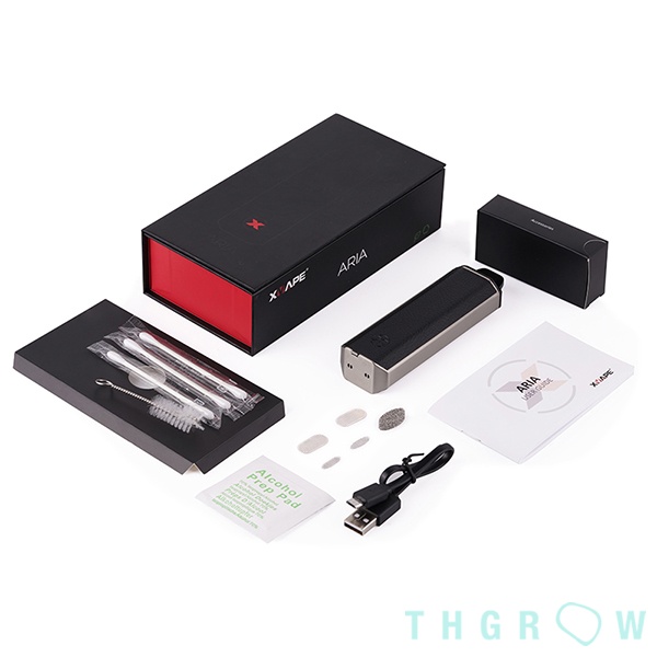 Especificação / Conteúdo Detalhe Dimensões 118 mm x 34 mm Peso 135 g Câmara Condução cerâmica oval Intervalo de Temperatura 100°C - 240°C Bateria 2.600 mAh Na caixa 1 Vaporizador X Vape Aria, 3 Cotonetes, 1 Escova de limpeza, 1 Cabo USB, 1 Preparado de limpeza com álcool, 1 Filtro, 2 Redes de boquilha, 2 Redes de câmara
